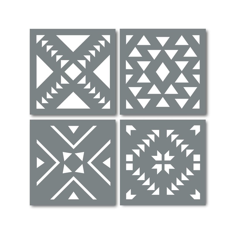 - 11.5 INCH TILE STENCIL SET: Floor and wall tile stencils in a modern aztec pattern inspired by American southwestern art and design. Great for use with 12 inch tiles, stencils are a great way to spruce up boring plain tiles! Each floor stencil (or wall stencil) measures 11.5 x 11.5 inches. This set includes four different southwestern pattern tile stencils - pick just one or create a mosaic using all four!