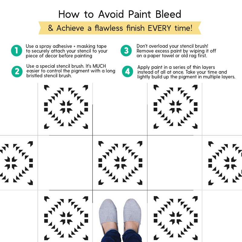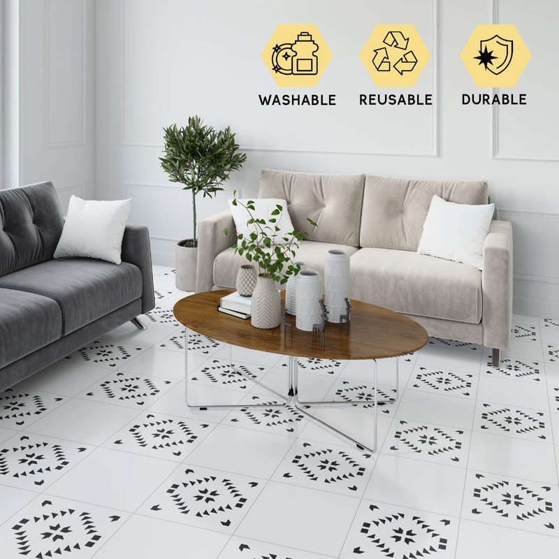 - NOT JUST FOR FLOORS: Use these reusable tile stencils on any flat surface. They make for great wall and floor tile stencils - and they’re also great for sprucing up old and outdated furniture. Our tile stencils are washable and durable so you can reuse them over and over again.