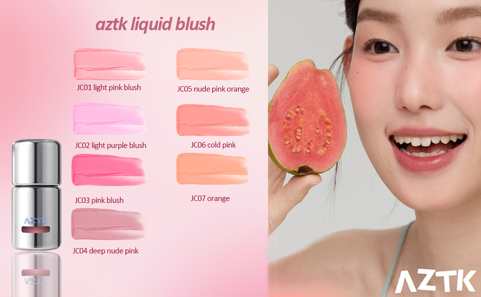 Aztk Liquid Blush, Aztk Jelly Color Liquid Blushes, Blush for Cheeks, Cream Blusher with Sponge Head - High-Pigment, Long-Lasting, Lightweight, Matte Finish (JC05)