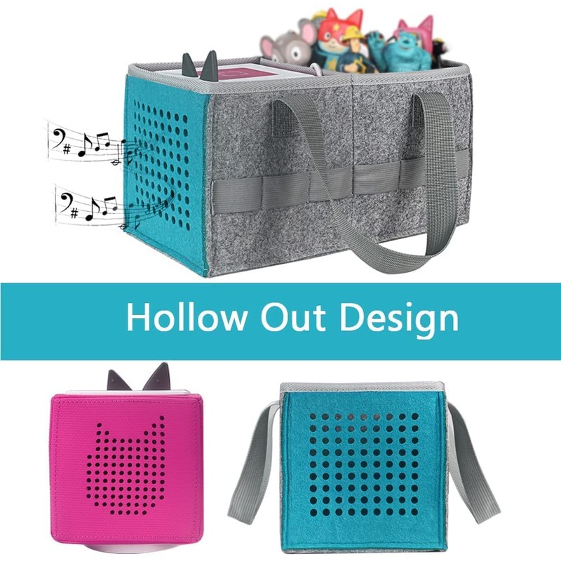 - Pratical & Large Capacity Design: Hollow-Carved Design, kids can listen music without picking up the Toniebox; With Elastic Strap in both side allows kids to carry more Tonies figures; unique diving wall help kids to find specific tonies quickly & easily.