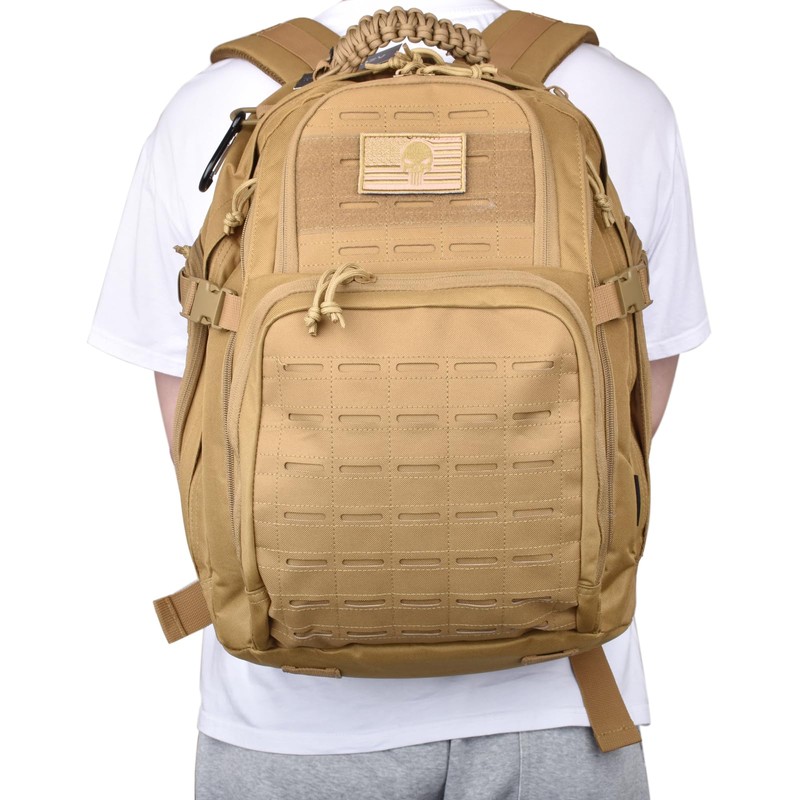 AZULDEZ 40L Military Tactical Backpack for Men, Molle EDC Daypack Work Backpack for Hiking, Army 3 Days Assault Pack & Bug Out Bag with Water Bladder Compartment (05-Khaki)