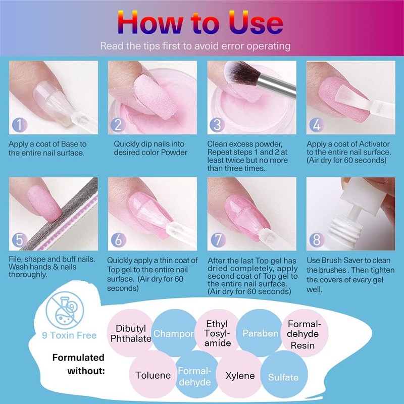 - NO NEED NAIL LAMP CURING: AZUREBEAUTY Dip Powder doesn't need nail lamp to cure, which can avoid making your skin black. It's a faster way to paint your nail.