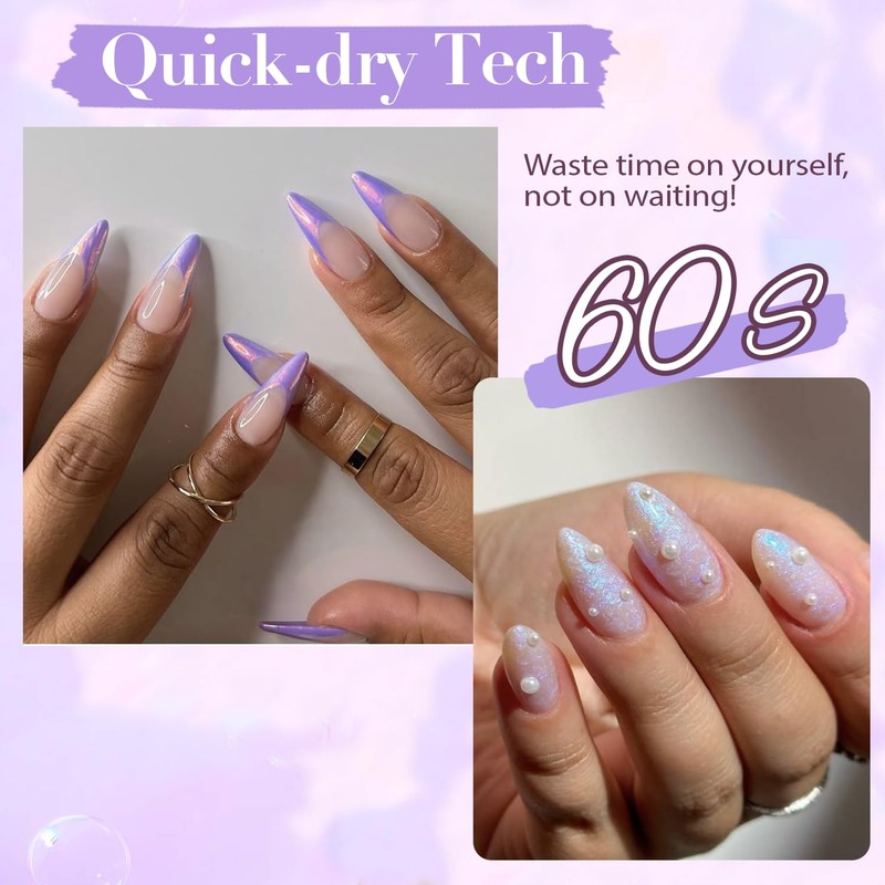 - Easy to use & Quick dry :The Nail Polish set doesn't require lighting,quick dry nail polish in 60 seconds,complete coloring within 3 minutes.Our natural nail lacquer extract high purity color paste,coloring strength,high coverage,light and smooth colloid,easy to use,brush cotton candy nail polish coloring,no need to repeatedly brush can make nail surface color