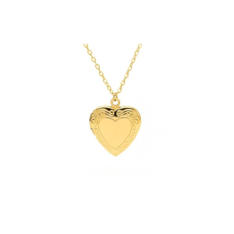 Azusa Sun Women Locket Necklace Stainless Steel 18k Gold Plated Photo Lockets Statement Gift Valentines Heart Locket Necklace Jewelry - Gold