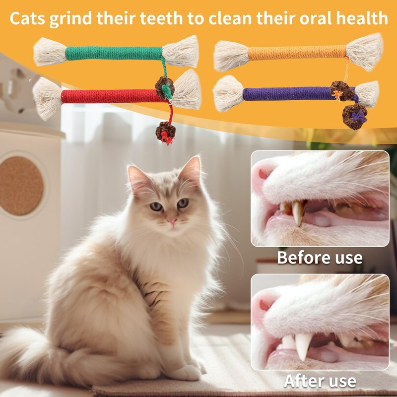 Azushwer 4 Pcs Catnip Toys for Cats,Catnip Toy Bite Rope, Interactive Cat Toys for Indoor Cats, Suitable for Teeth Cleaning and Stress Release Catnip Toy Chewing Rope