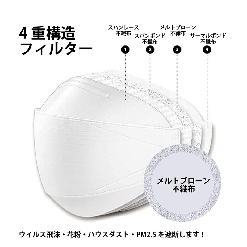 Azuwan KF94 Splash Protection Mask, Diamond-Shaped, 4-Layer Filter, 20 Bags, 99% Bacteria Filtration Efficiency, Non-woven Fabric, Soft Ear Band, White, L