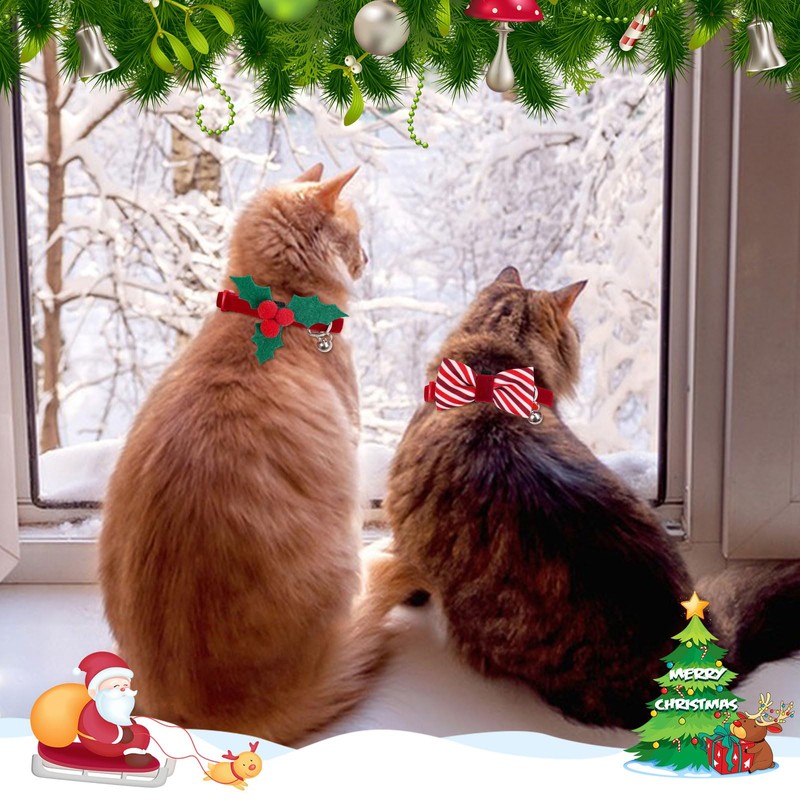 azuza Christmas Cat Collar Breakaway with Bells, 2 Pack Holiday Celebration Cat Collars with Cute Holly and Bowtie Accessories, Size Adjustable from 8"-12"