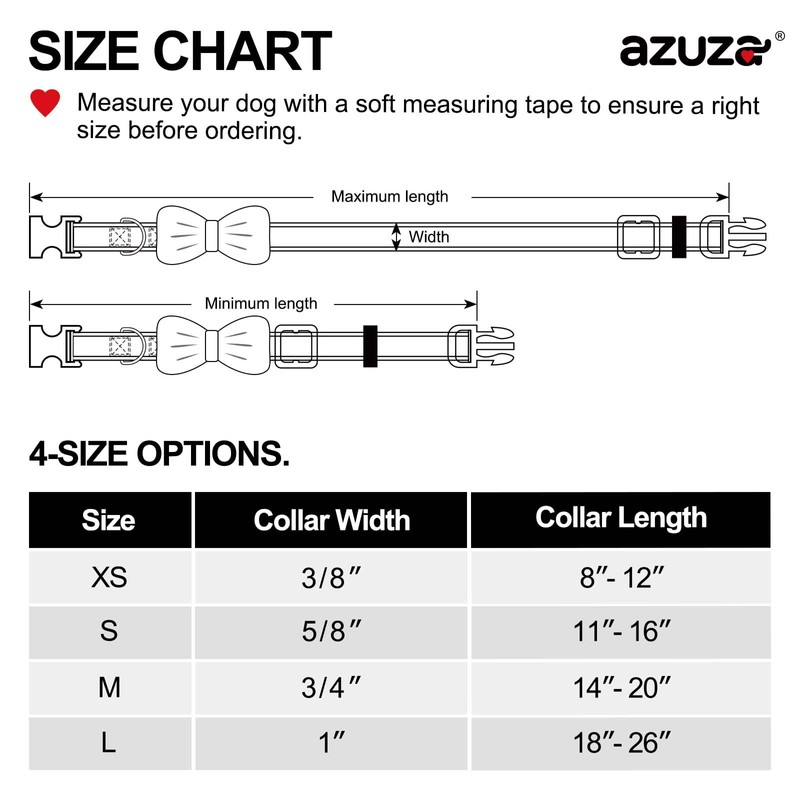 - High Quality Material - azuza valentines dog collar is made of durable polyester that's resistant to tearing. Ecofriendly plastic buckles and chrome coated metal D ring, easy to get put on and off.