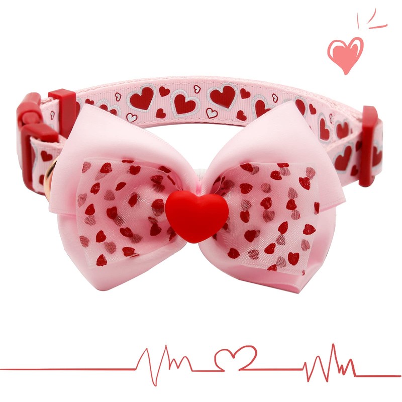 azuza Valentine's Day Dog Collar Removable Valentine Bowtie Dog Collar with Cute Pink Heart Pattern Spring Dog Collar Valentines Day Gift for Medium Dogs in Valentine's Day