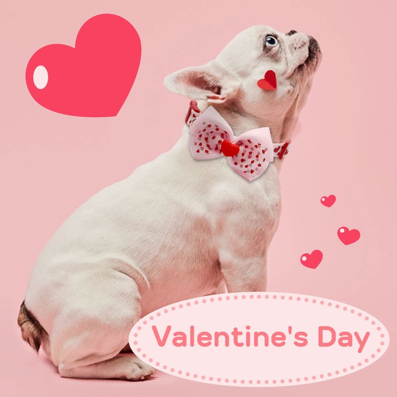 - Occassion: The collar straps features red lovely heart pattern and double layer bowtie made of silk and voile, full of romantic atmosphere. It's a lovely valentines gift for your dog at this valentine and also suitable for weddings, parties, family picnics, taking photo and so on.