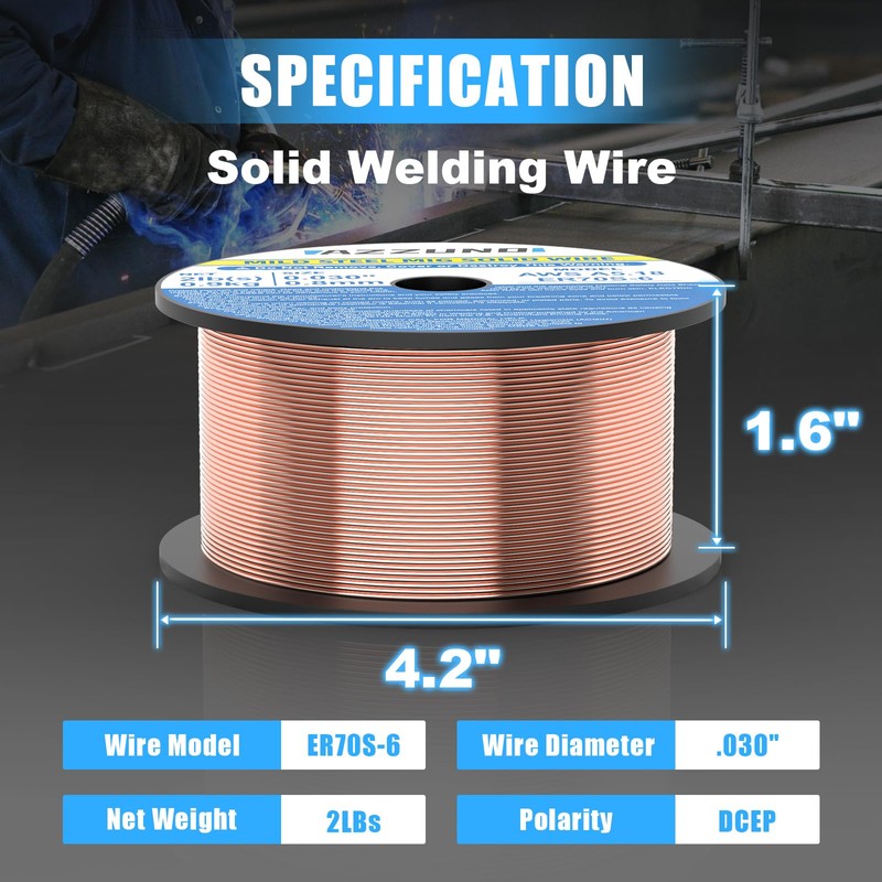 • 【2LBS 0.030" MIG SOLID WIRE】AZZUNO AWS ER70S-6 .030" MIG solid welding wire is easy to use, even for beginners. With SMOOTH feeding and LOW splatter, you'll enjoy a hassle-free gas mig welding experience.