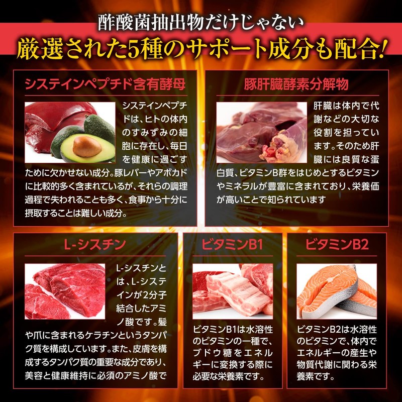 - ✅【嬉しいサポート成分も贅沢配合!】システインペプチド含有酵母、豚肝臓酵素分解物、L-シスチン、ビタミンB1、ビタミンB2を配合し、あなたをトータル的にサポートします!