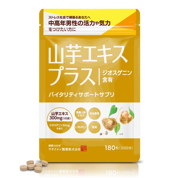 【製薬会社監修】山芋エキスプラス 中高年男性応援サプリ 亜鉛 アルギニン 高麗人参 ビタミンB 野中烏犀園 180粒 (30日分)