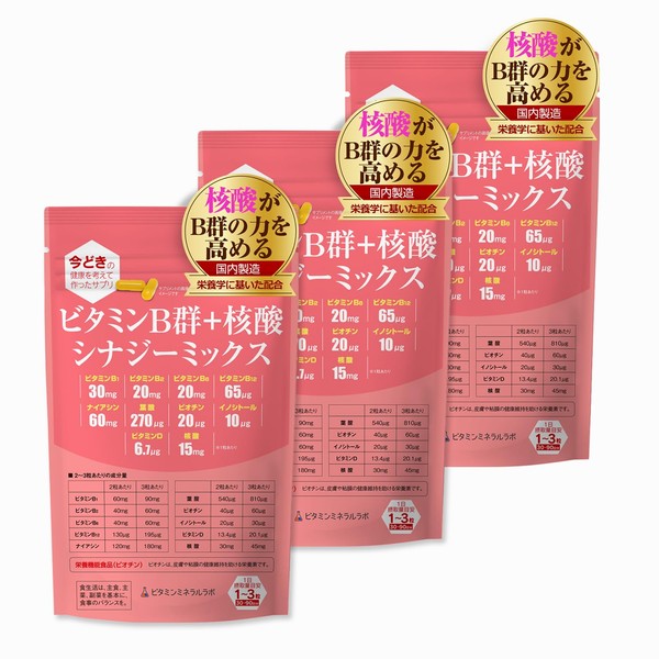 ビタミンB群+核酸 シナジーミックス【90粒入】3袋「ナイアシン」「核酸」強化配合/B1,B2,B6,B12/栄養のプロがプロデュース・おすすめのサプリ