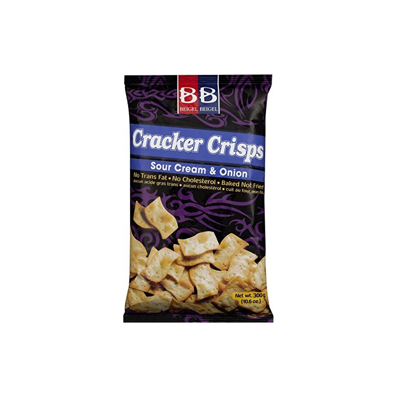 Beigel & Beigel cracker crisp are a delicious snack and make a great addition to a salad. They are sour cream and onion flavor with no cholesterol. Beigel & Beigel sour cream and onion cracker crisp are baked and not fried, so you can enjoy a healthy snack.