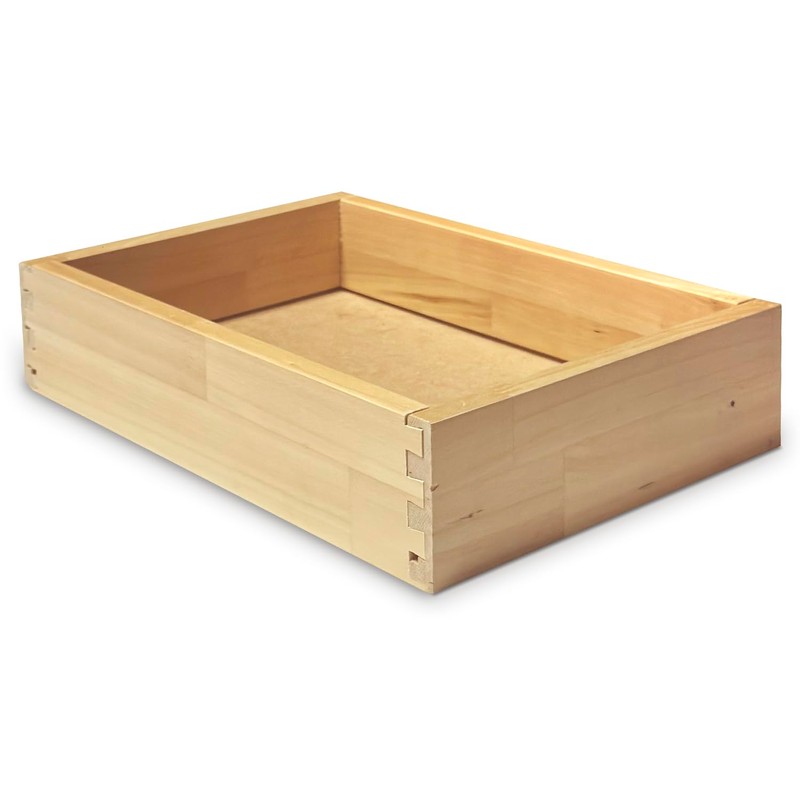 The vinyl-wrapped particleboard features a sleek, moisture-resistant finish that resists stains and scratches, making it a practical choice for modern interiors. For a more traditional, durable option, the Baltic Birch drawer boxes are crafted with thick, 11-ply Baltic Birch plywood, featuring sturdy dovetail joinery and a smooth, rounded edge design.