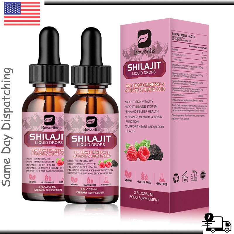 B Beworths 2x Organic Himalayan Shilajit Natural Pure Extremely Potent, Fulvic Acid 60ml US