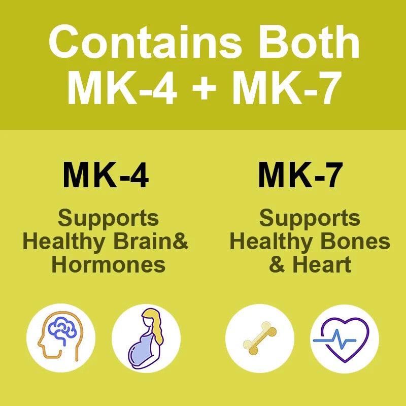Vitamin K2 + Vitamin K4 MK7 Supplement Supports Heart Immune Health Strong Bones