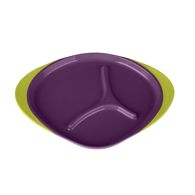 The ideal plate for fussy eaters and self-feeders. Our divided plate keeps food groups separate on the plate thanks to our subtle dividers. Easy grip tabs on side and non-slip base give kids greater control. Large surfaces and rim assist with self-feeding. Dishwasher and microwave safe. Available in 4 fun colours.