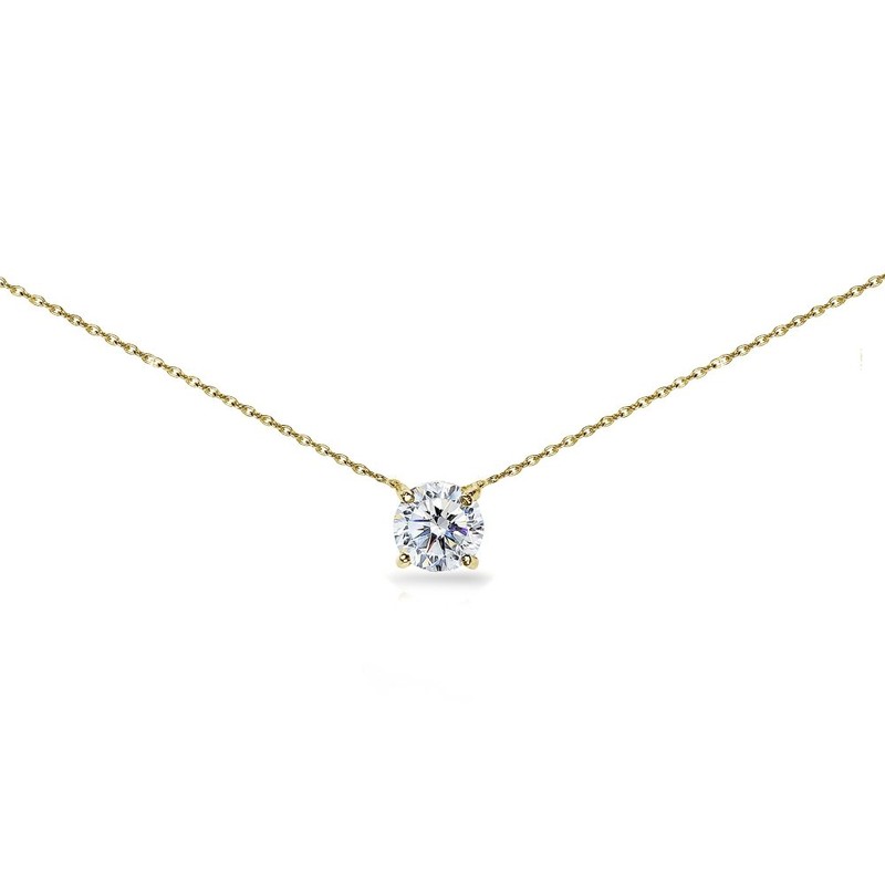 B. BRILLIANT Yellow Gold Flashed Sterling Silver Solitaire Clear European Crystal Choker Necklace for Women
