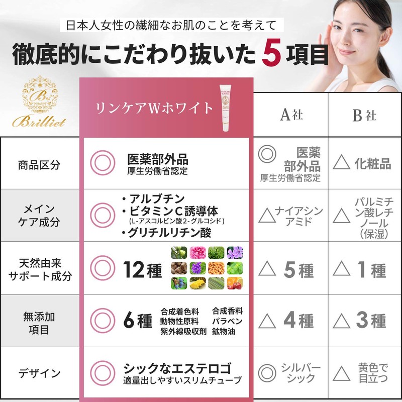 - (Made in Japan) The linkare W white wrinkle cream is produced and the product is all done in Japan and made with Japanese skin quality. Because it is an item that you can use every day, we created it with the idea that you want to continue to be a cream that you will not want to let it go for your age skin