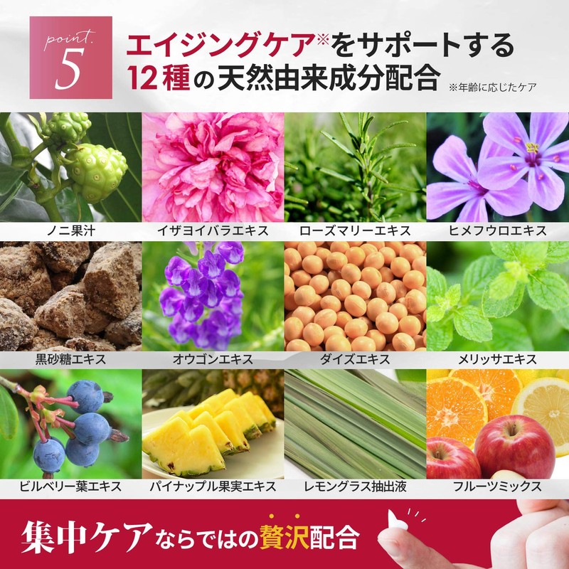 - Moisturizing Ingredients: 12 carefully selected natural ingredients that hug your skin and keep it moisturized. Even if the moisturizing ingredients have become hard and dry as if they were steamed with steam, it will regain the turnover that tends to be disturbed and toned. It is formulated with high moisturizing ingredients, so it will moisturize and crisp, even on the skin that dries easily