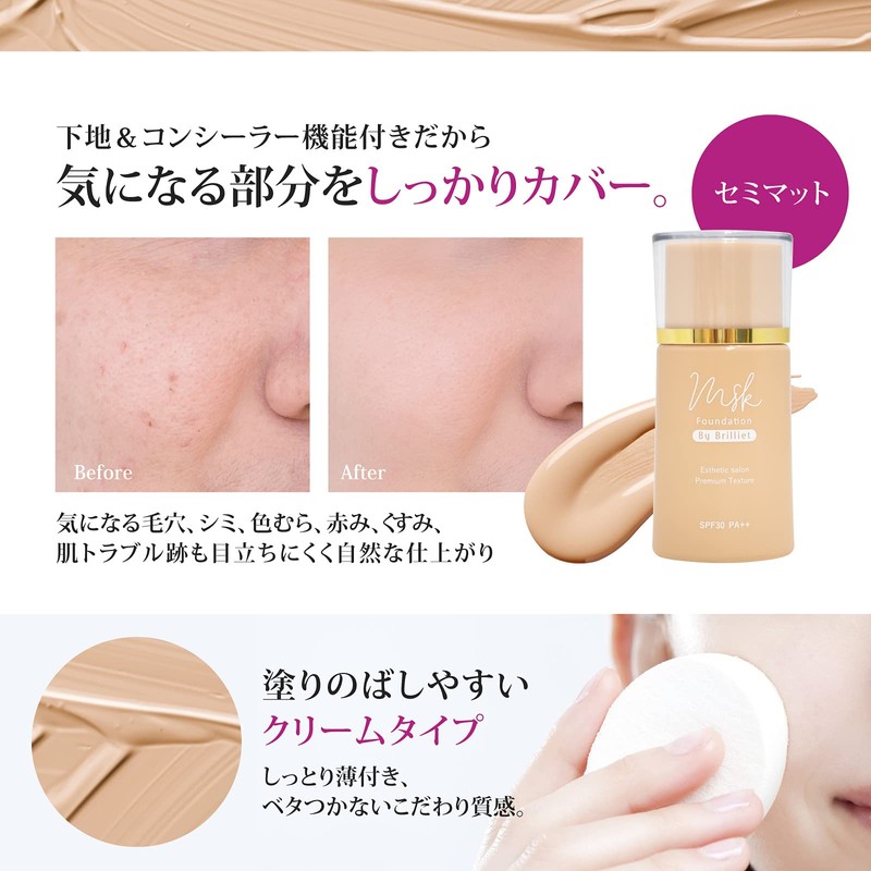 - (Enjoy 8 functions with this single item) Multi-functional foundation (Quasi-drug) cosmetic foundation, moisturizing, skin rash, waterproof, sunscreen, concealer, serum, foundation. [Color is a natural type that is easy to fit Japanese people] We use the color of ochre that is the average Japanese skin color. The tone of the mood is lower than natural and natural beige, but it gives you a healthy skin tone. Semi-mud that is hard to shine on