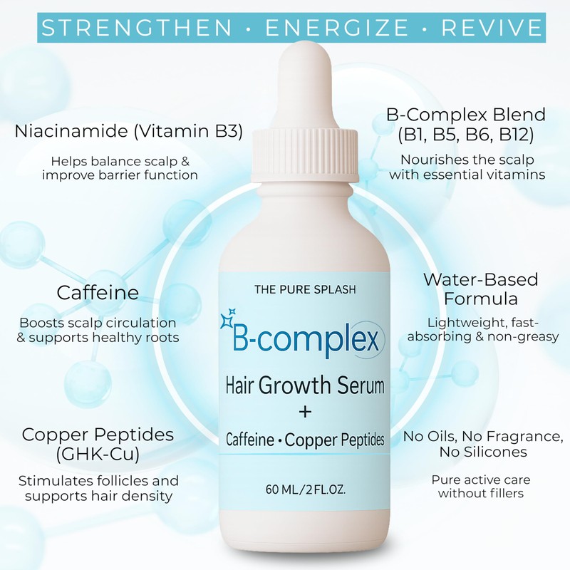B-Complex Hair Serum with Caffeine & Copper Nutrients – Vitamin Rich Scalp Energizer for Stronger Hair & Scalp – Lightweight, Non-Greasy Formula