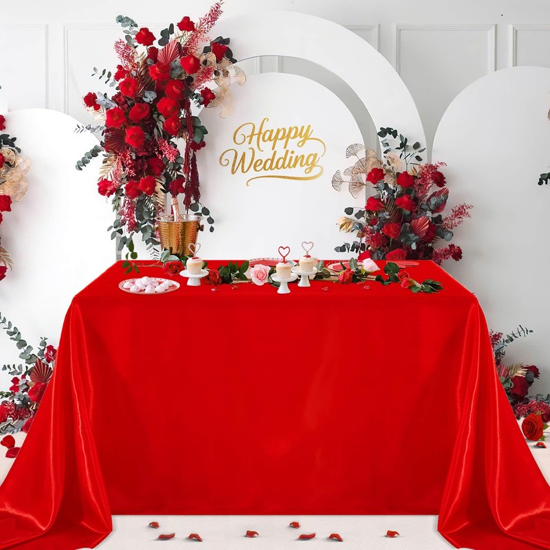 - ✨ Red Satin Tablecloth: 6 pieces tablecloth,each measures 57x120 inch in size, manual measurement may result in a 1-2cm error in product size, appropriate for a table that can seat 10-12 people.