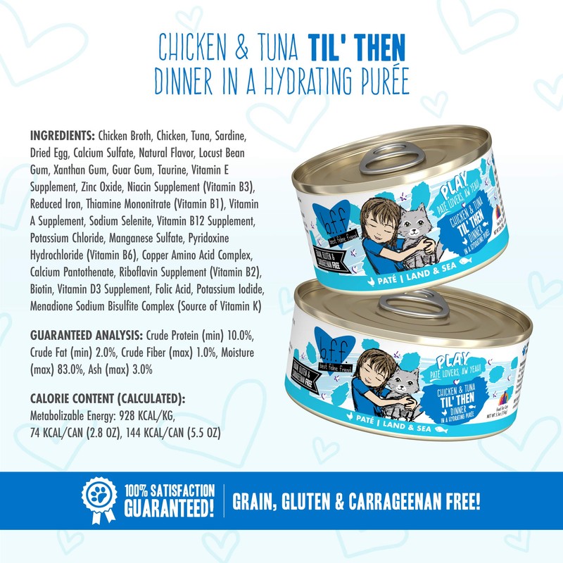 - Chicken & Tuna Til' Then (5.5oz Can, Pack of 8) Cage-free chicken and red-meat tuna gently pureed into a creamy and delicious paté!