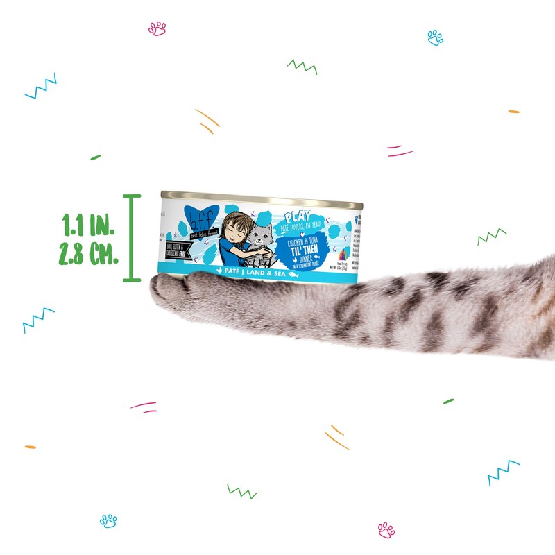 - B.F.F. Play - Protein-rich, high-moisture wet cat food that is low in carbs and fat. Pate Lover’s, Aw Yeah!