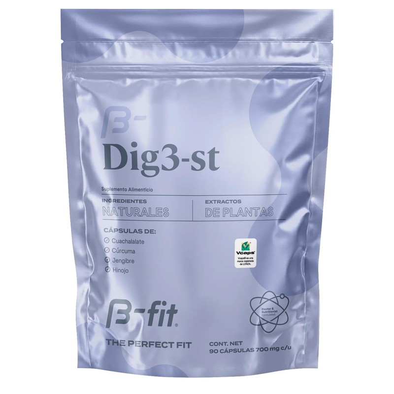 B-Fit DIG3-ST | Digestivo Natural sin Sabor | 90 Cápsulas | Suplemento Alimenticio en Cápsulas | con Extractos de Cuachalalate, Cúrcuma, Jengibre e Hinojo.