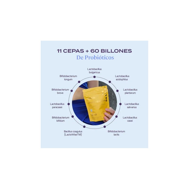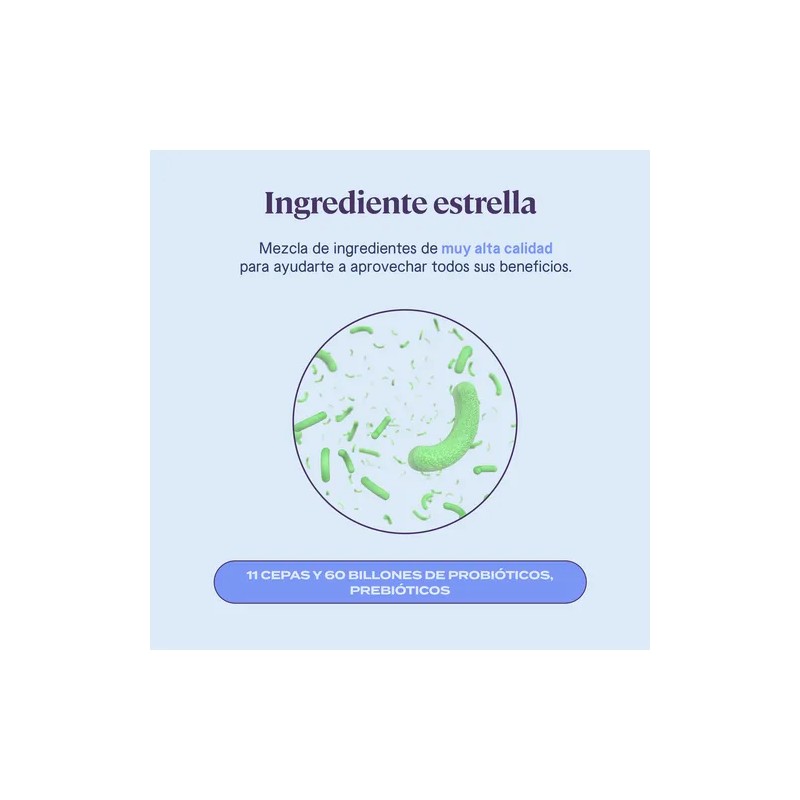 INGREDIENTES | Nuestra fórmula avanzada combina 11 Cepas de probióticos de alta calidad, seleccionados cuidadosamente. Contiene cepas específicas de bacterias beneficiosas y suministra 60 Billones de probióticos en cada porción.