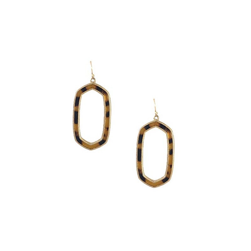 - Geo shaped drop earrings with feature tortise resin inlay.
