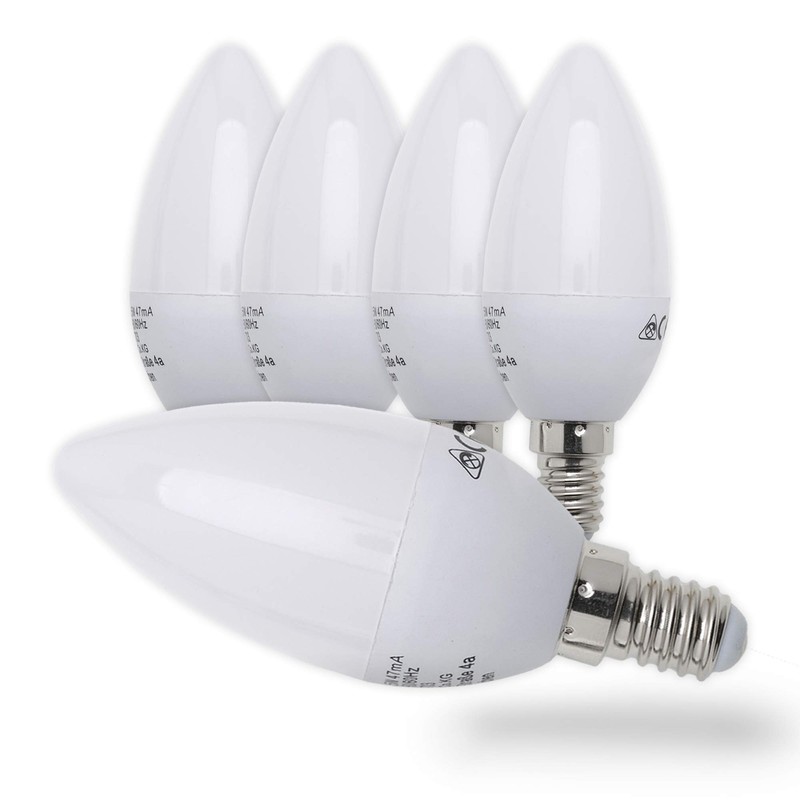 B.K.Licht B.K.Licht - 5er Set LED Lampe E14 mit warmwei?er Lichtfarbe, 5 Watt, 470 Lumen, LED Glhbirne, Leuchtmittel, Birne, Glhlampen, Kerze, Bulb, 3,7x10,6 cm, Wei?