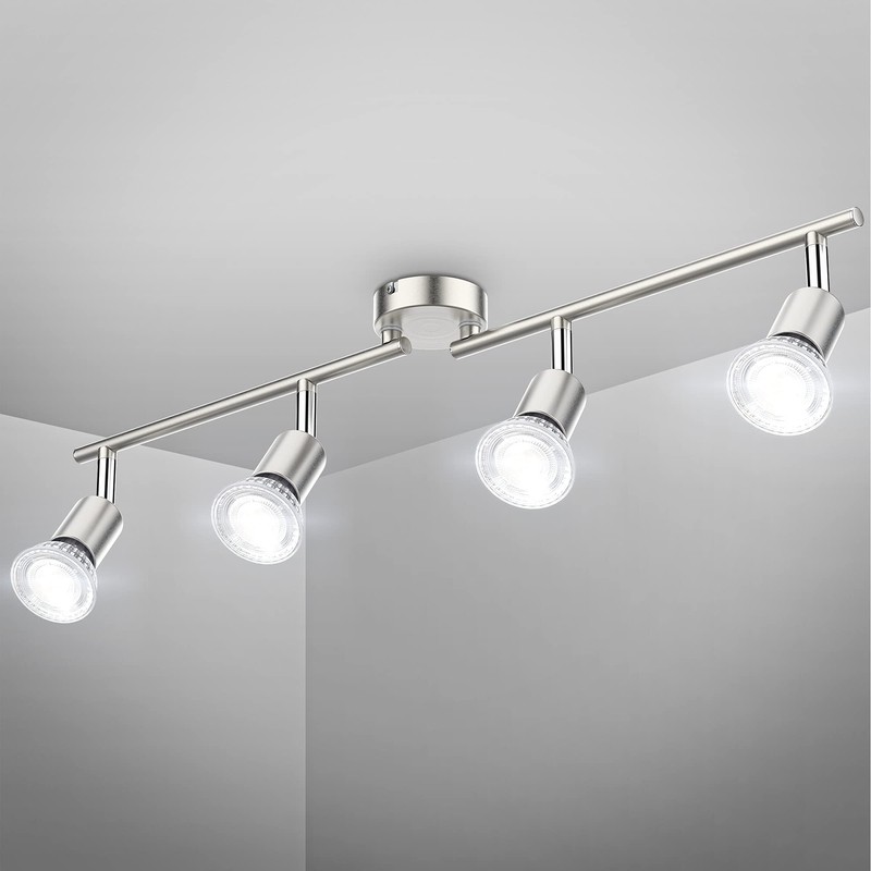 B.K.Licht B.K.Licht - LED ceiling lamp, swiveling, neutral white light color, 5 watts each, 400 lumens, ceiling light, LED lamp, living room lamp, bedroom lamp, kitchen lamp, 60.5x10.5 cm, matt nickel