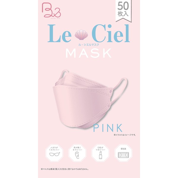 B& Le Ciel Masks, Diamond Shaped 3D Mask, Individually Packaged, Pink, 50 Pie...