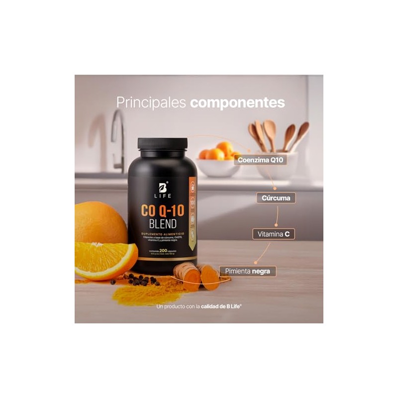 B Life Coenzima Q10  200 Cpsulas  1000 mg por porcin  Adicionado con Crcuma y Vitamina C  Ingredientes naturales  Co Q-10 Blend.