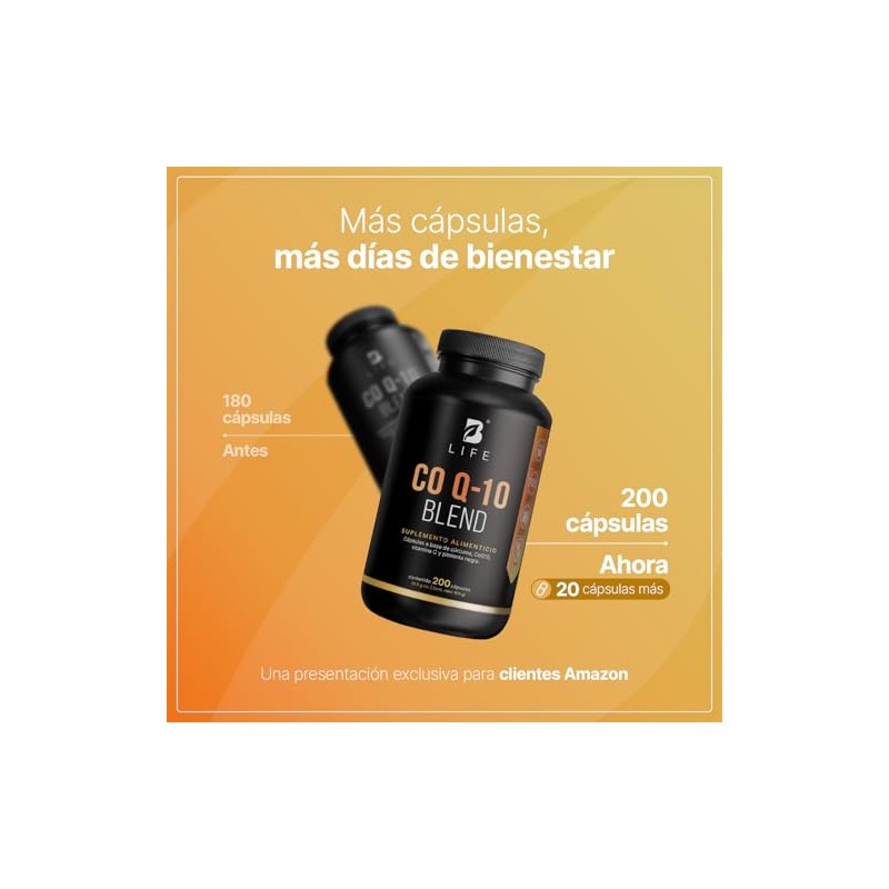 B Life Coenzima Q10 200 Cpsulas 1000 mg por porcin Adicionado con Crcuma y Vitamina C Ingredientes naturales Co Q-10 Blend.
