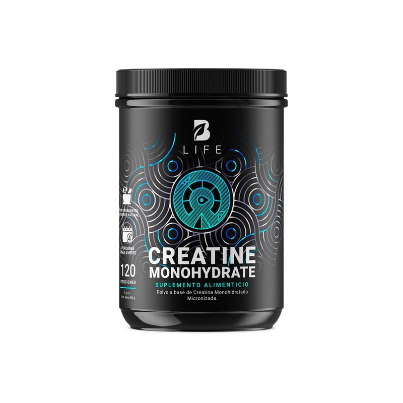 B Life Creatina Monohidratada en polvo 600g 120 Servicios 5 g por porcin Alta Pureza Creatine Monohydrate.