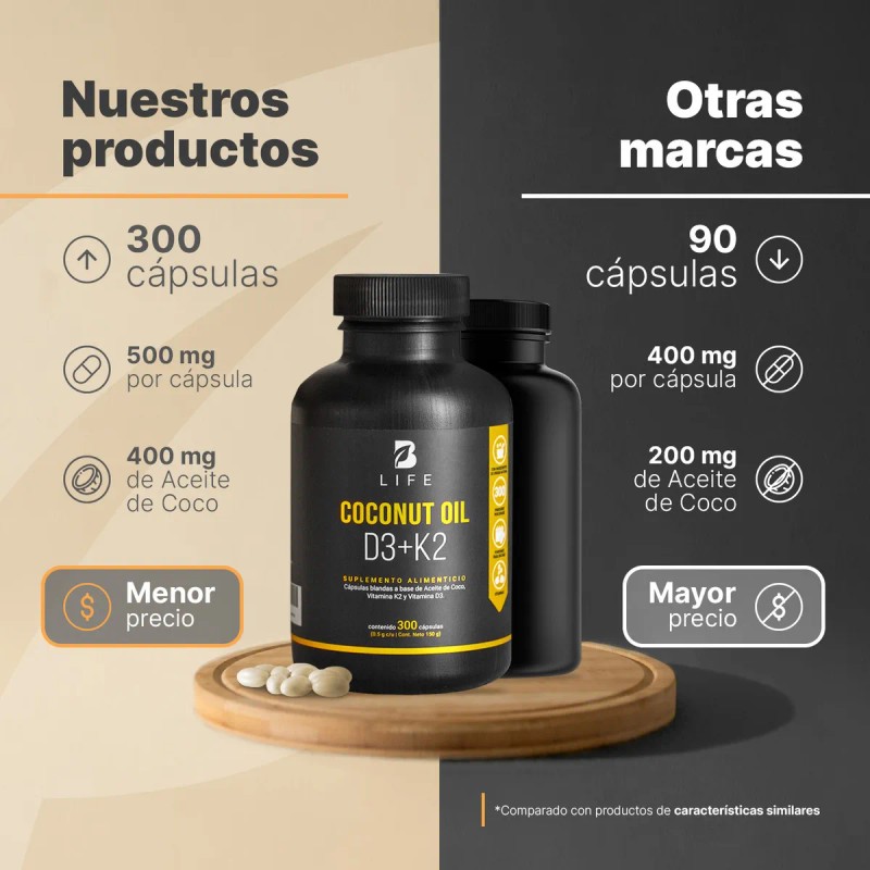 B-Life D3 + K2 | 300 Cápsulas | Vitamina D3 400 UI + Vitamina K2 | Salud Ósea, Inmunidad y Absorción de Calcio | Fórmula Completa y Natural