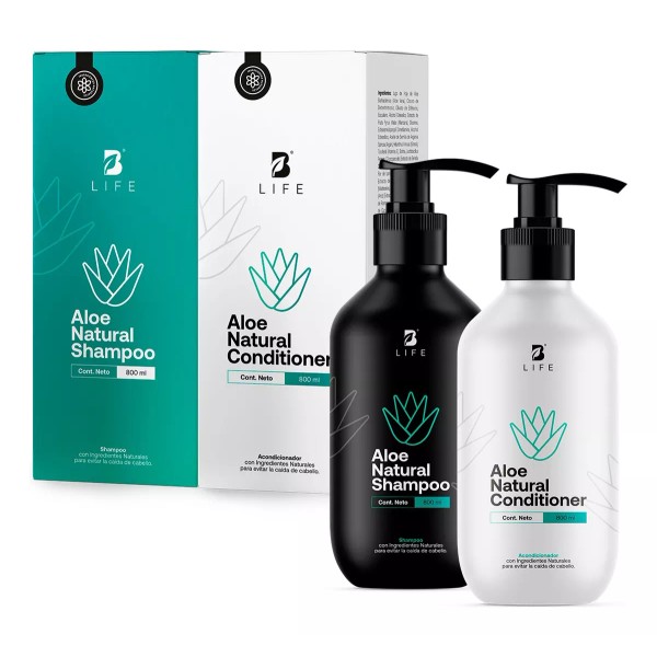 • Aloe Natural Kit de B Life: Shampoo y Acondicionador con más del 82% de ingredientes naturales. ¡Revive tu cabello, combate la caída, y dale brillo y fortaleza! Sin sulfatos ni parabenos.