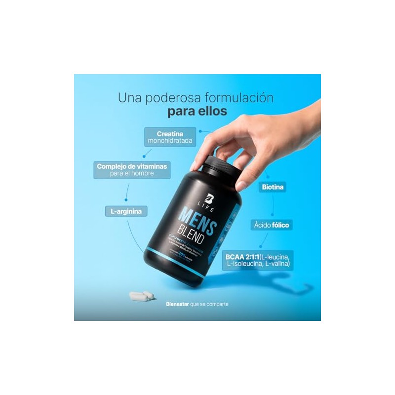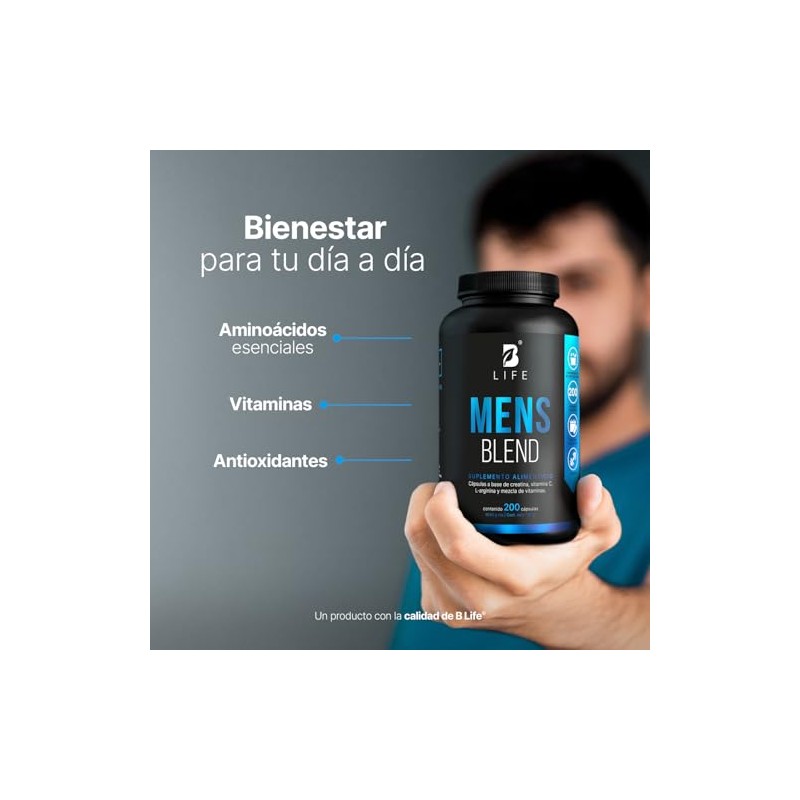 🌟 ⭐ B Life Multivitamínico para Hombre | 200 Cápsulas | 650 mg por porción | Creatina Monohidratada, BCAA 2:1:1 (L-Leucina, L-Isoleucina, L-Valina) y L-Arginina | Ingredientes Naturales | Mens Blend. ⭐ 🌟