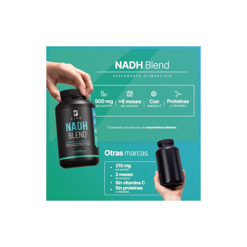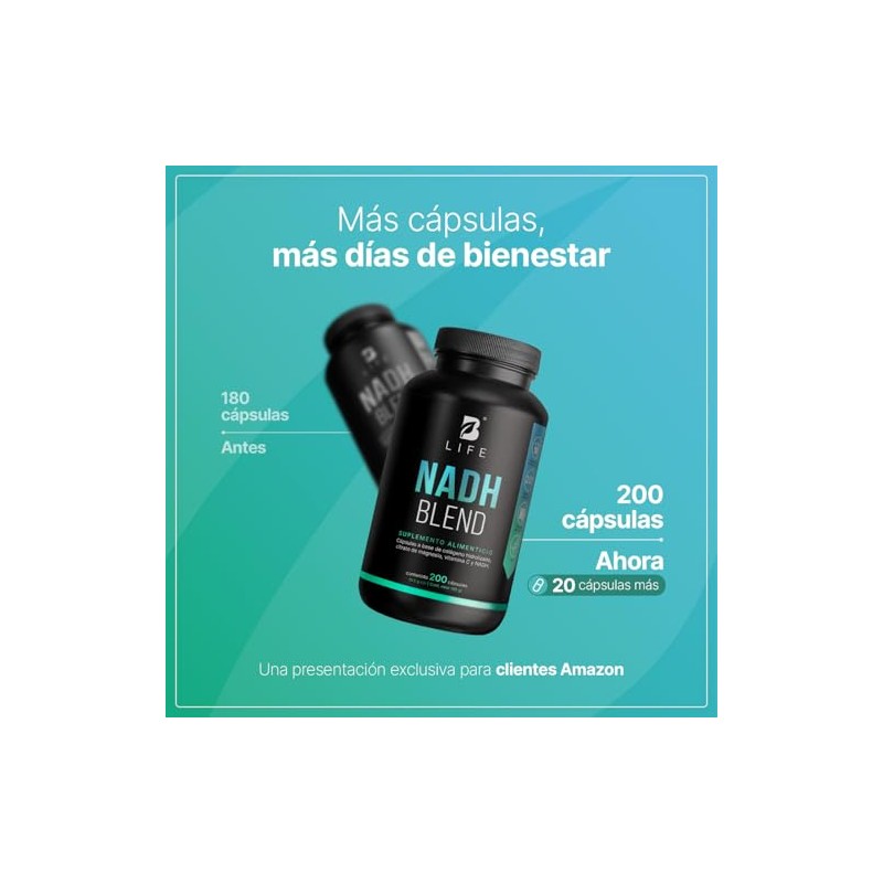 B Life NADH 200 Cpsulas 200 Das de Consumo 6 Veces Ms Producto vs Otros Nicotinamida Potenciada con Magnesio y Colgeno Antioxidante NAD Blend.