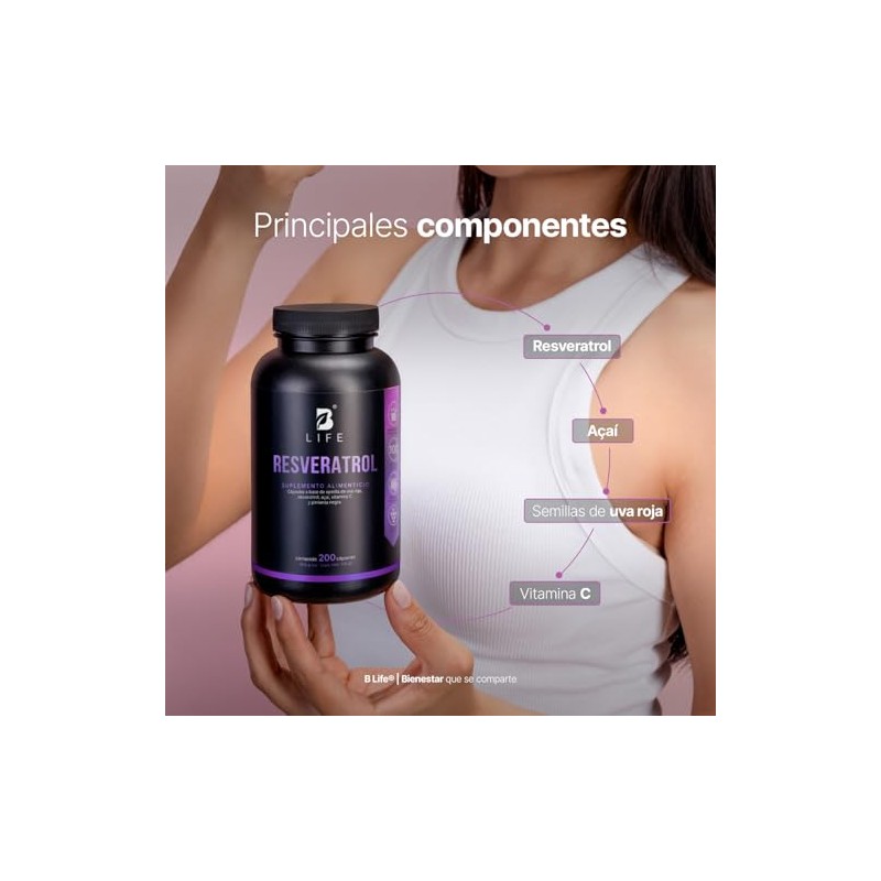 - ¡Resveratrol B Life, un poderoso antioxidante! Cada cápsula de 500 mg contiene una formulación especial a base de resveratrol, semillas de uva roja, açaí y vitamina C. Esta exclusiva fórmula está enriquecida con pimienta negra, lo que potencia la absorción de los nutrientes.