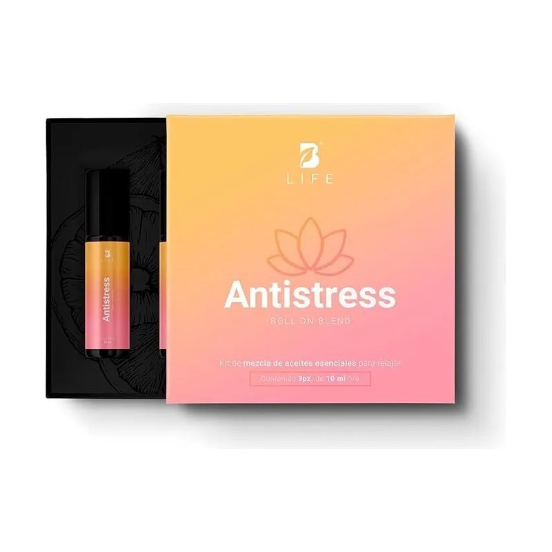 B-Life Roll On Antistress es una mezcla calmante de aceites esenciales 100% puros, diseñada para ayudarte a recuperar la tranquilidad mental y emocional en cualquier momento del día.