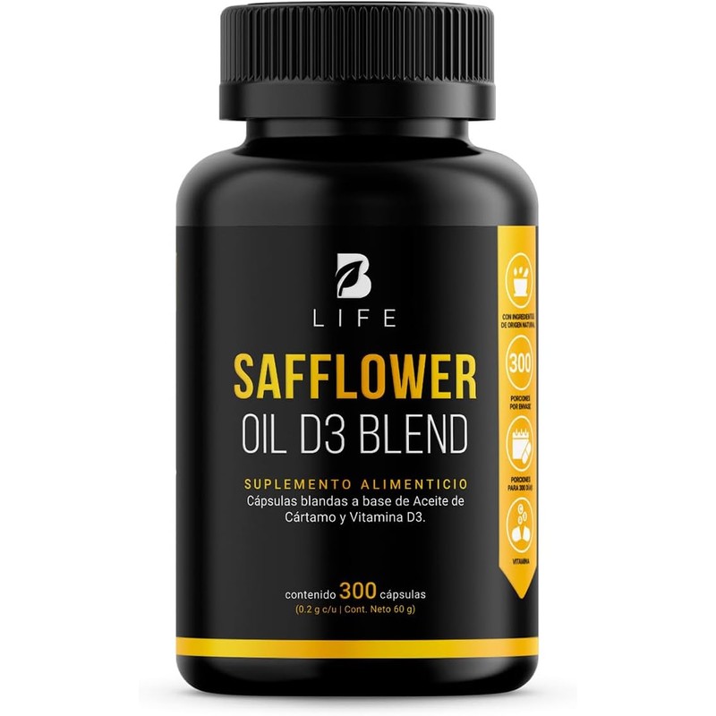 B Life – Safflower Oil D3 Blend | 300 Cápsulas Blandas (Softgels) Vitamina D3+ con Aceite de Cártamo | Ingredientes naturales para huesos, defensas y bienestar general