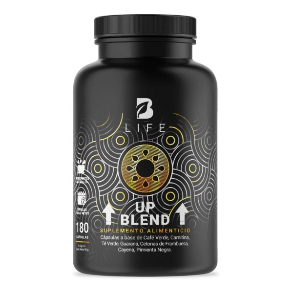 UP Blend de B-Life es un termogénico de nueva generación que combina ingredientes clave como L-Carnitina, extractos herbales y cofactores energéticos para impulsar el metabolismo, mejorar el rendimiento físico y apoyar la pérdida de grasa corporal.