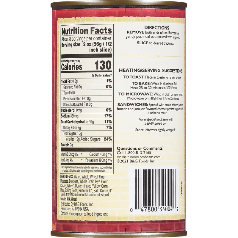 B&M Brown Raisin Bread has been served to families across the country for decades. This shelf stable bread has a two year shelf life from the date of manufacture, making it a pantry staple for generations. Spread B&M Original Brown Bread with cream cheese, peanut butter and jam, or flavored cheese spreads topped with luncheon meat.