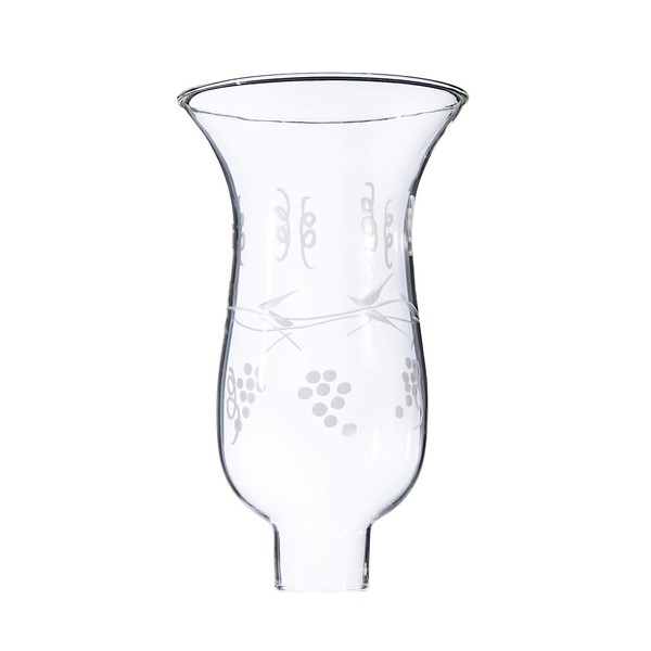 - Clear Glass Hurricane Style Lamp Shade With Grapes Pattern Cut Into Glass